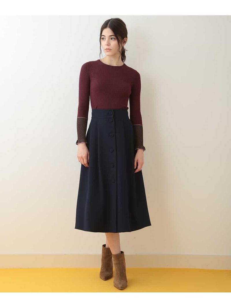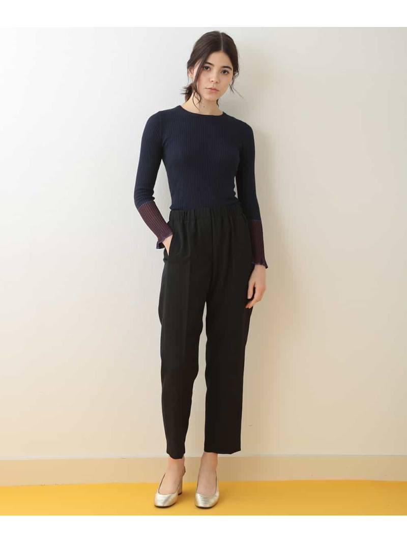 TARA JARMON(タラ ジャーモン)ラメ切り替えリブニット細めのお作りで美しいボディラインを演出してくれるフェミニンなリブニット。